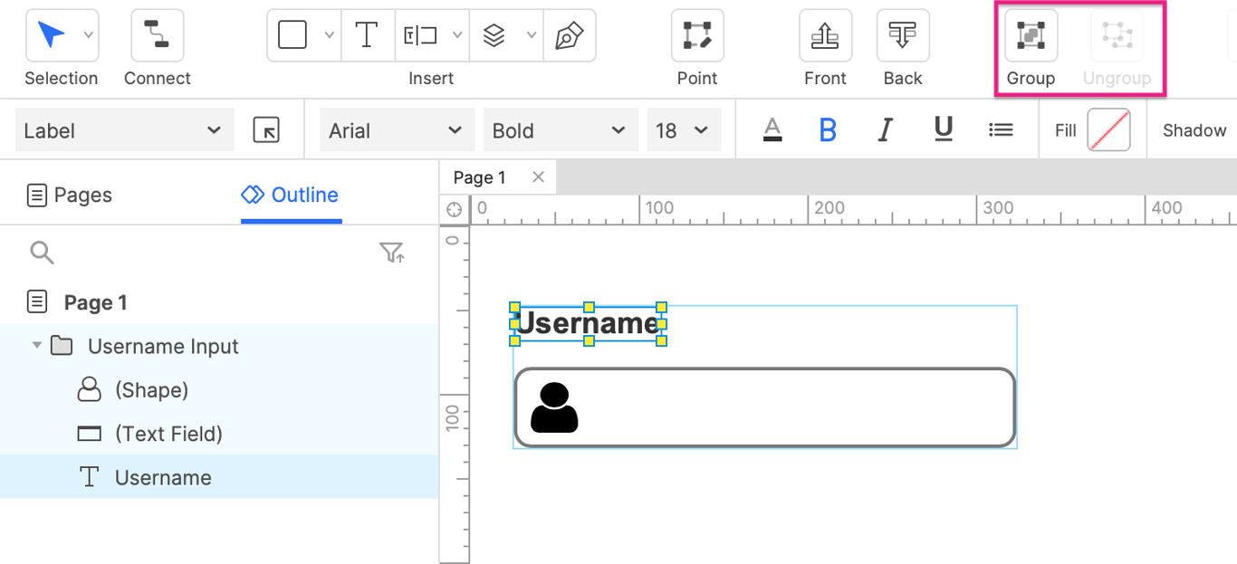 当你有几个 Widgets(元件),你想把它们当作一个整体来移动、编辑或应用 Interactions(交互)时,你可以把它们打组。然后你可以在组上设置属性来应用到所有 Widgets(元件),而不是单独处理每个Widgets(元件)。